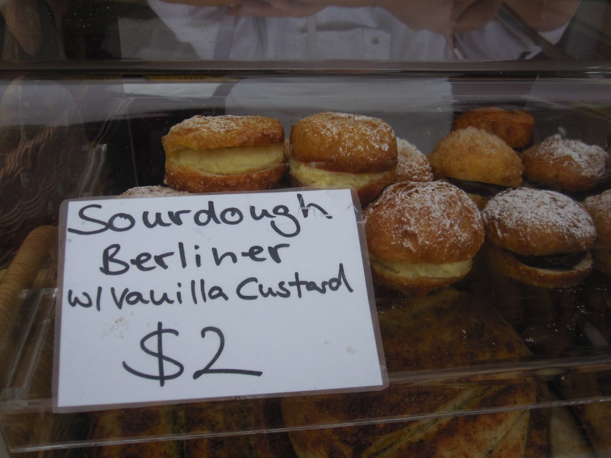 It was quite a small affair with stalls selling fruit, honey and bakery products and a few food stalls. The stall selling Bratwurst was particularly enticing as was the German bakery stall pictured. They had some ‘Berliners’ for sale ; it’s the German word for doughnut and reminded me of the famous “Ich bin ein Berliner” speech by J F